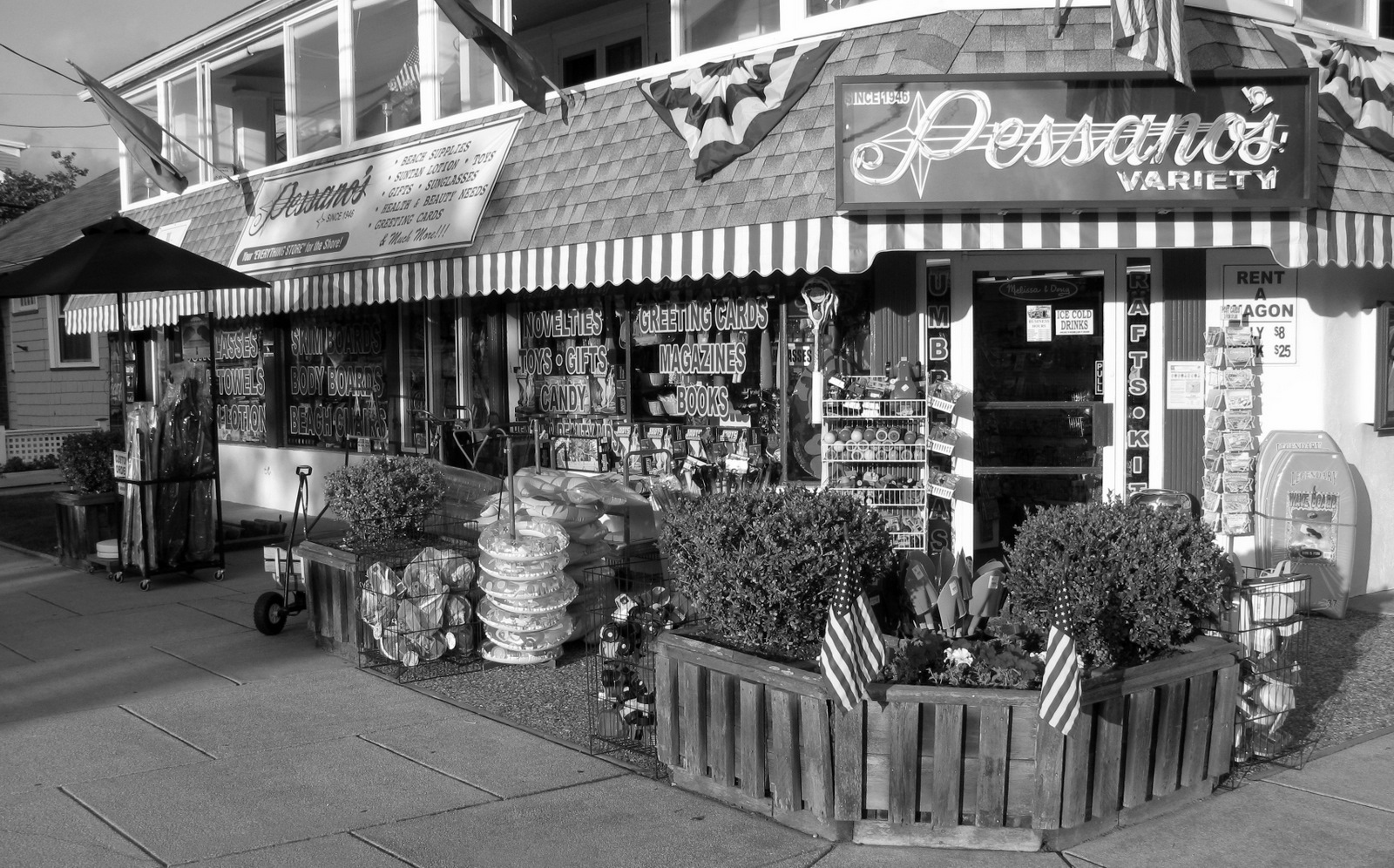 Coined as the "Everything Store for the Shore" Pessano's Variety has become an Ocean City institution. Celebrating it's 65 Anniversary in 2011 Pessano's Variety stores strive to be at the top of the market. We pride ourselves on providing each customer with an enjoyable shopping experience offering clean well stocked stores, friendly and knowledgeable staff and competitive pricing. We thank all our loyal customers for 65 years and look forward to the next 65. See you at the beach!